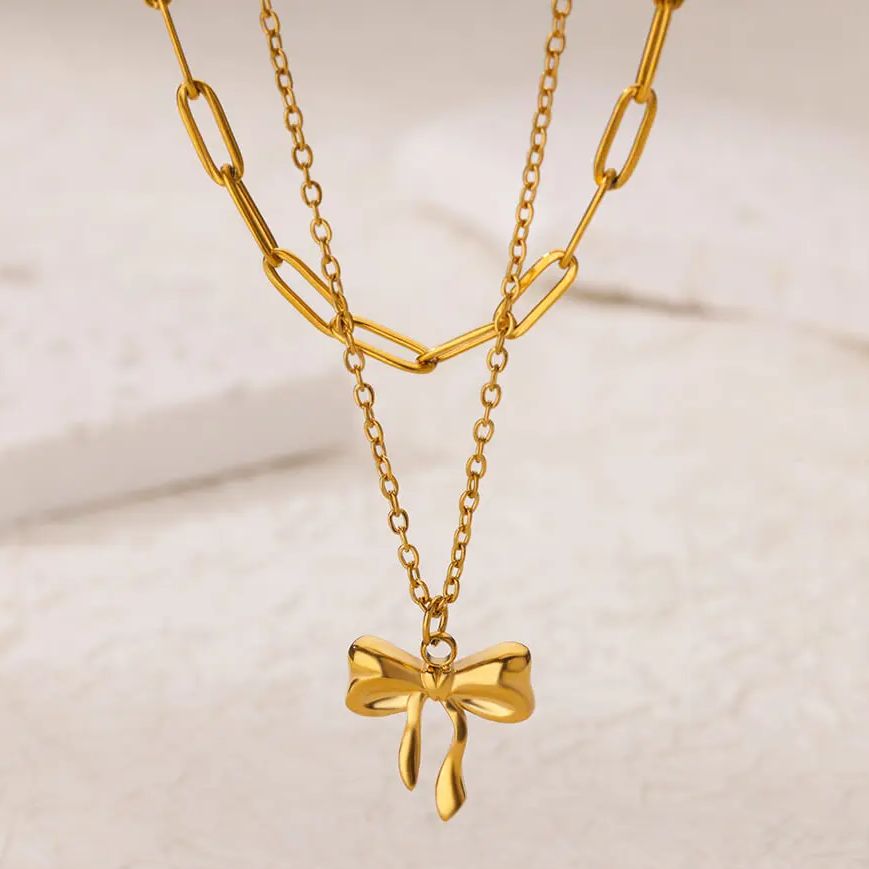 I found this beautiful Double Layer Chain Trendy Aesthetic Bownot Pendant Stainless Steel Necklaces for Women Gold Color Necklace Jewelry Accessories on their site. It looked perfect for everyday wear.